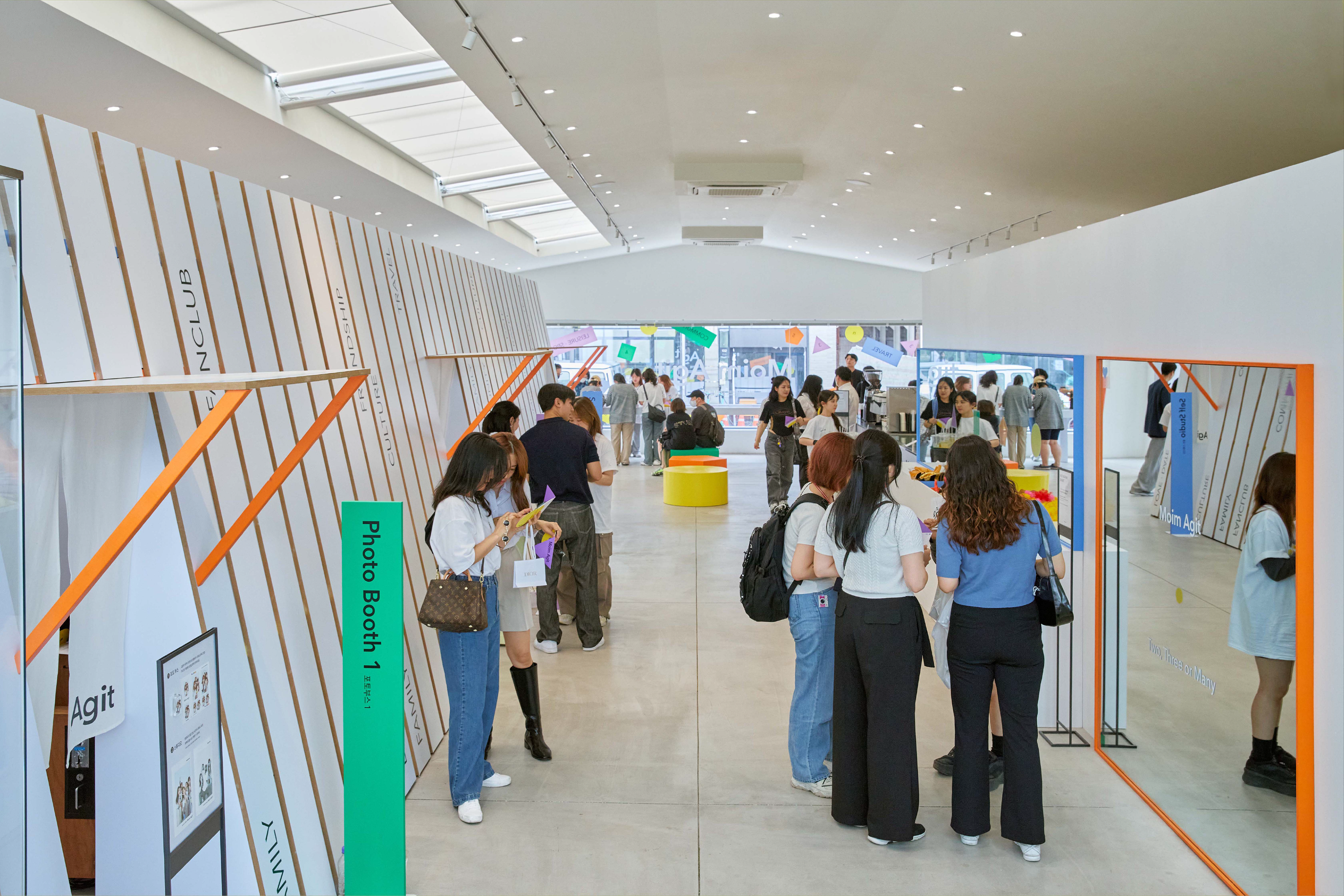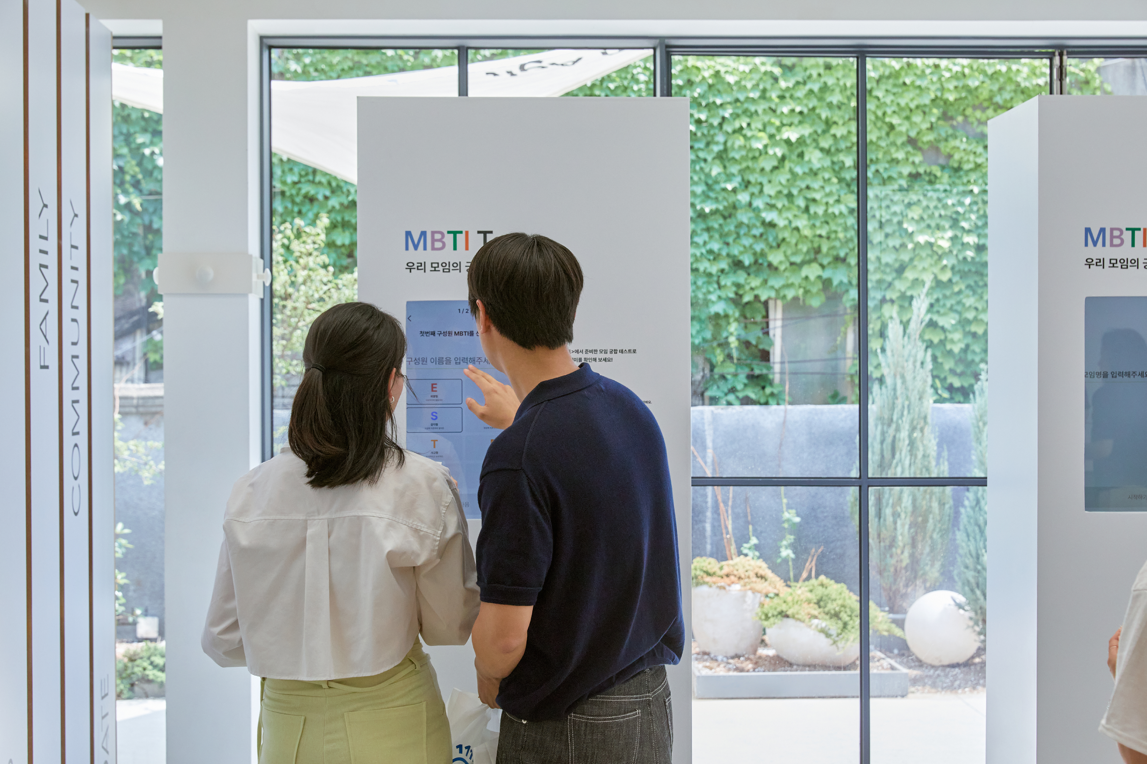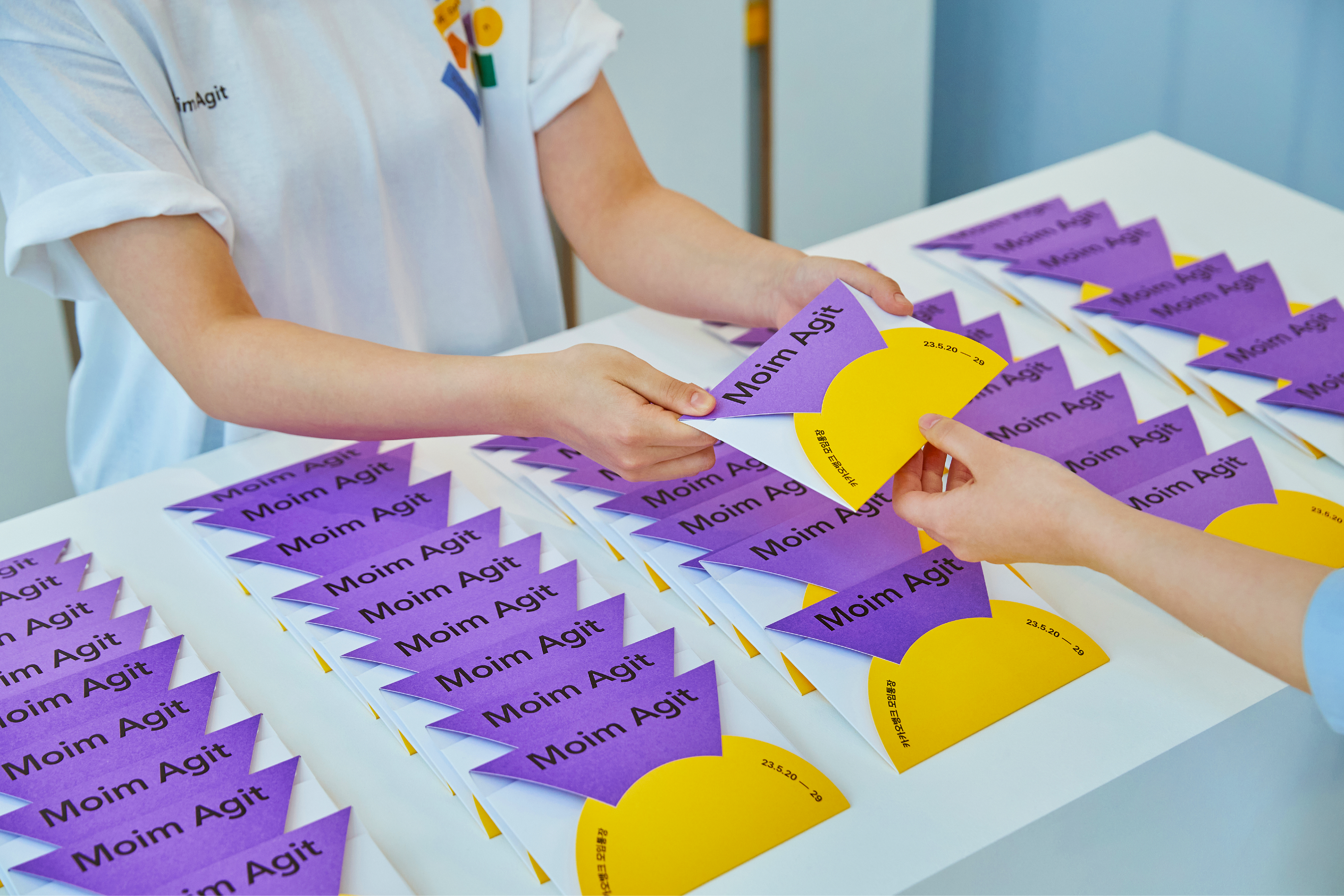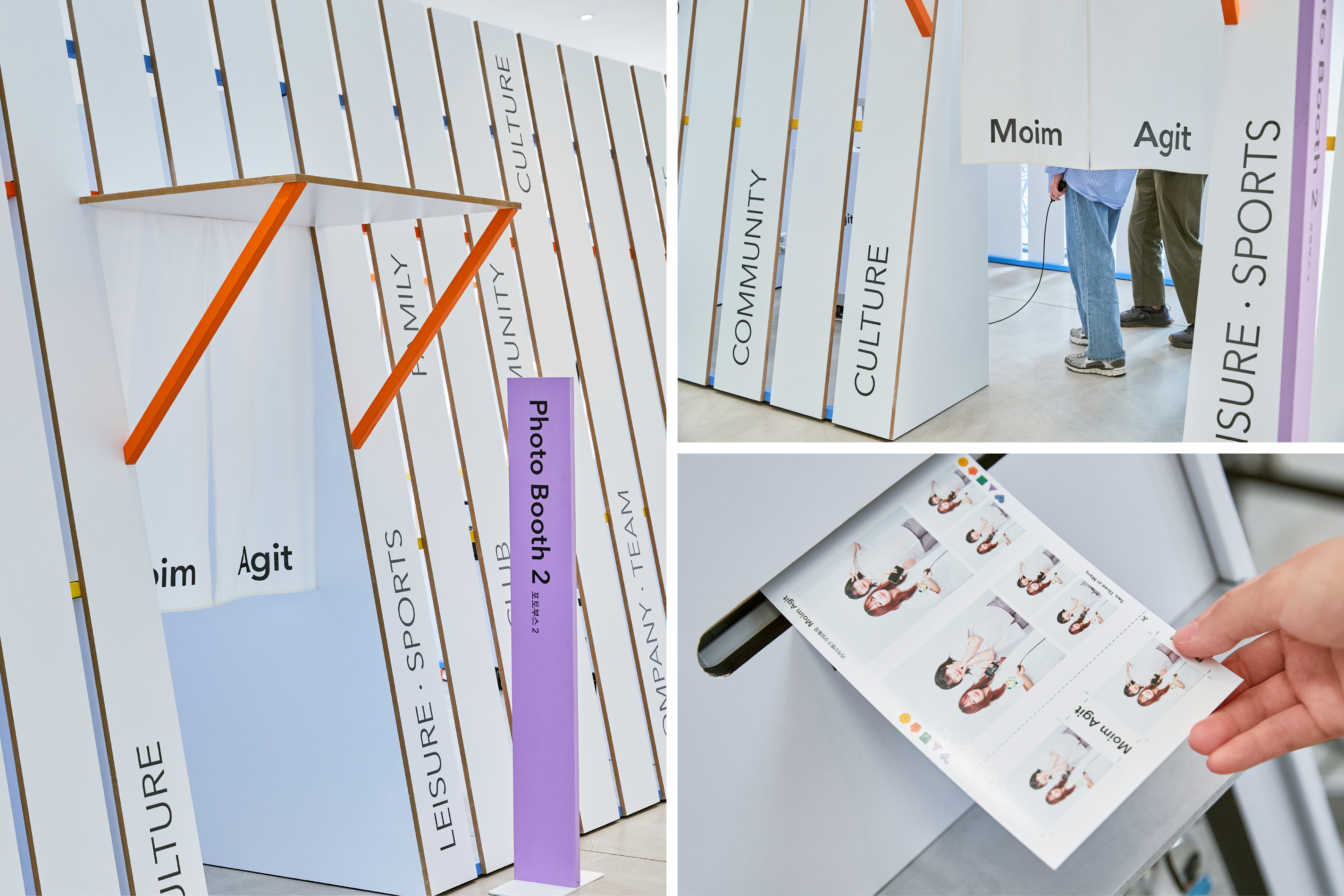 Moim Agit is a curated pop-up event designed to highlight the appeal of the Group Account*, a key service of Kakaobank. This engaging event aims to build collective memories among group members through various activities such as a 'Photo Booth', an 'MBTI Test', and 'Creating Customizable Keyrings'.