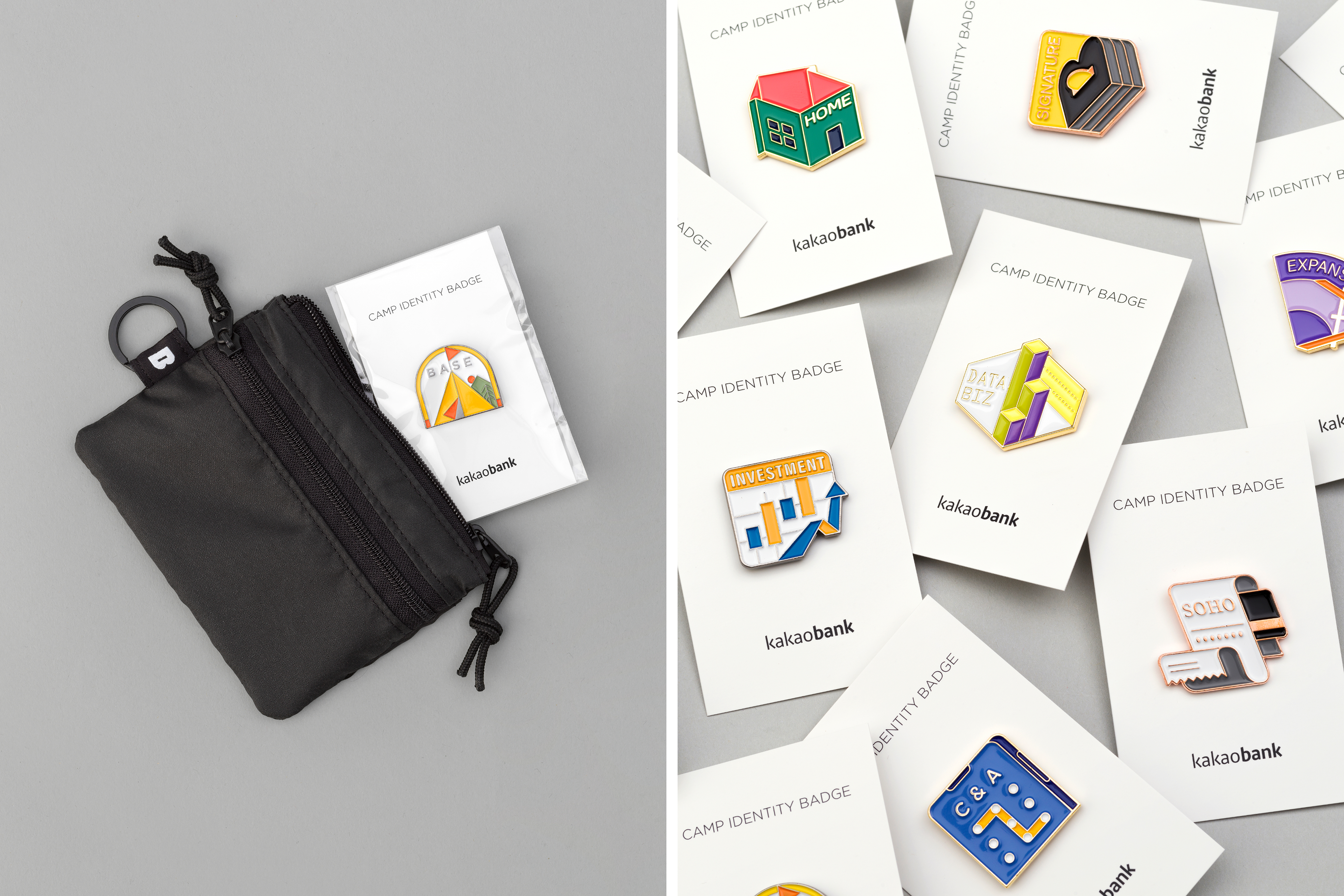 For a fun touch, a date stamp is also included for marking important dates. We provide new hires with emblem pin badges symbolizing each of the organizations within kakaobank, matched to their respective affiliations.