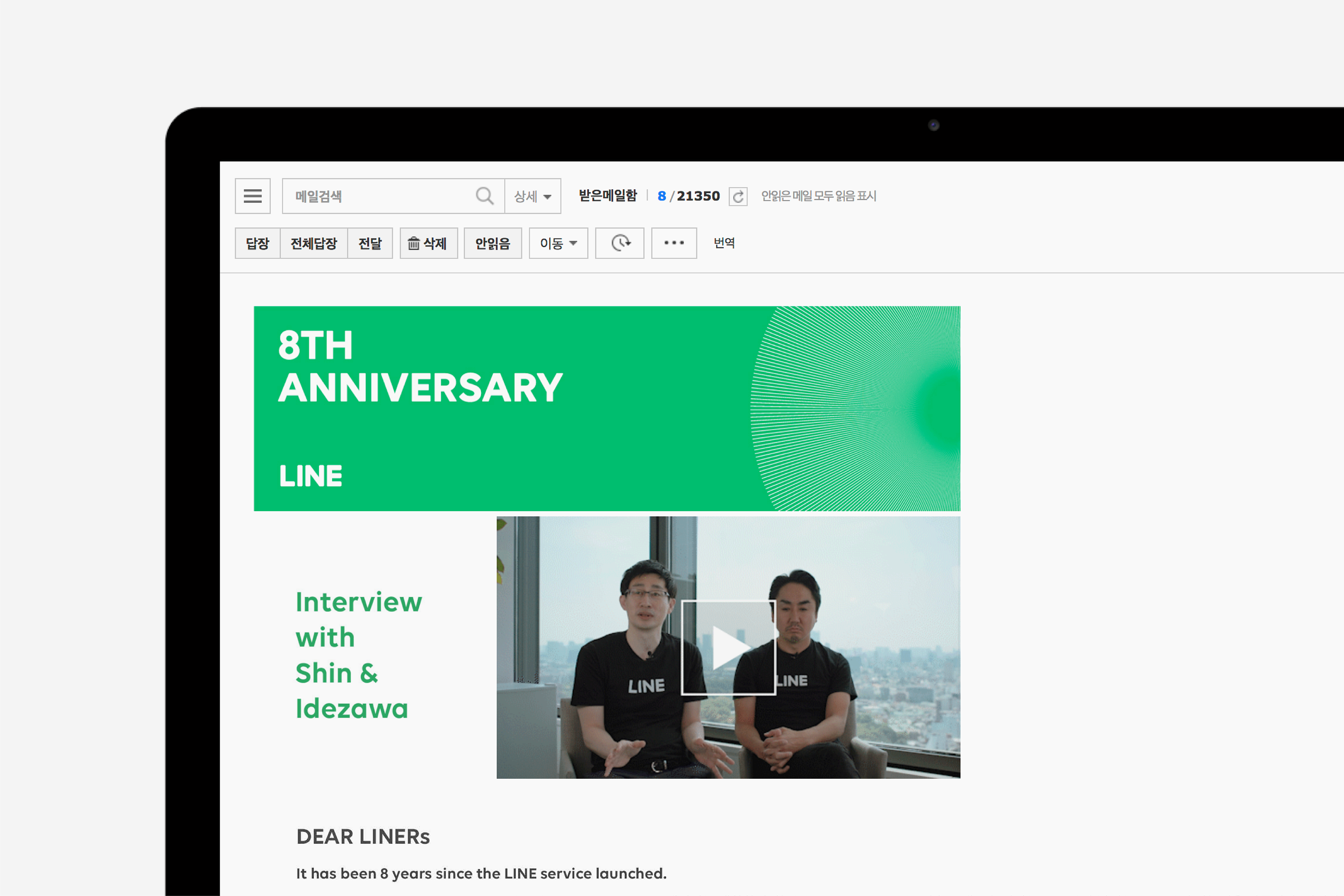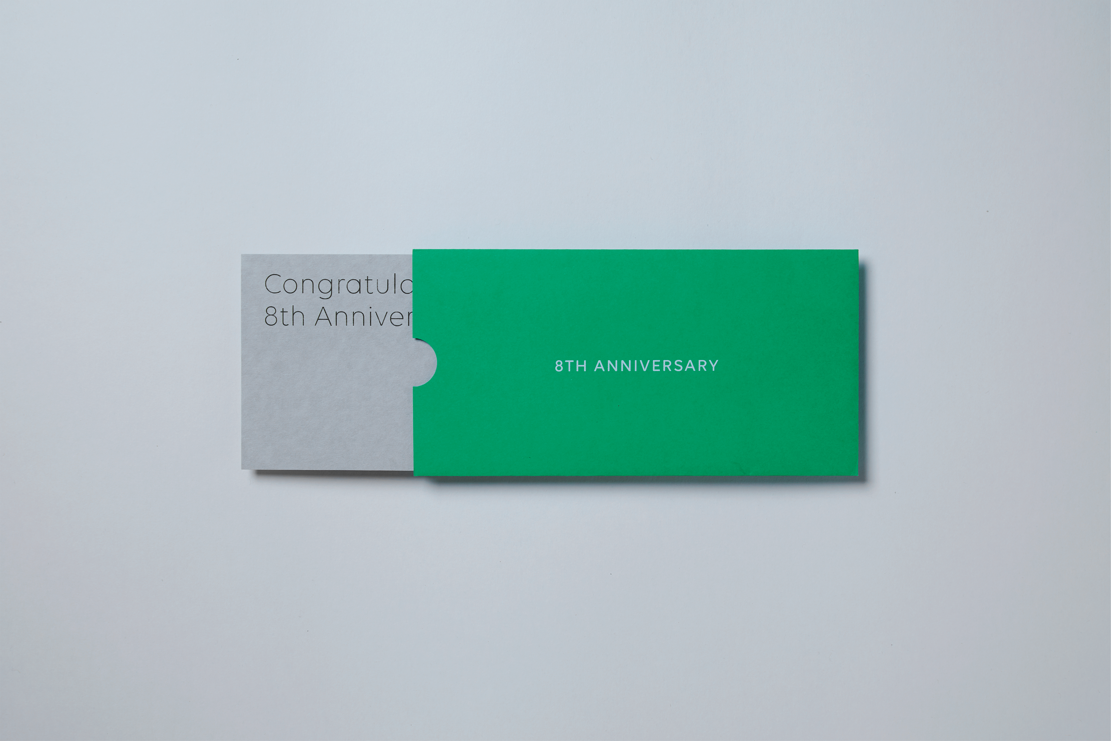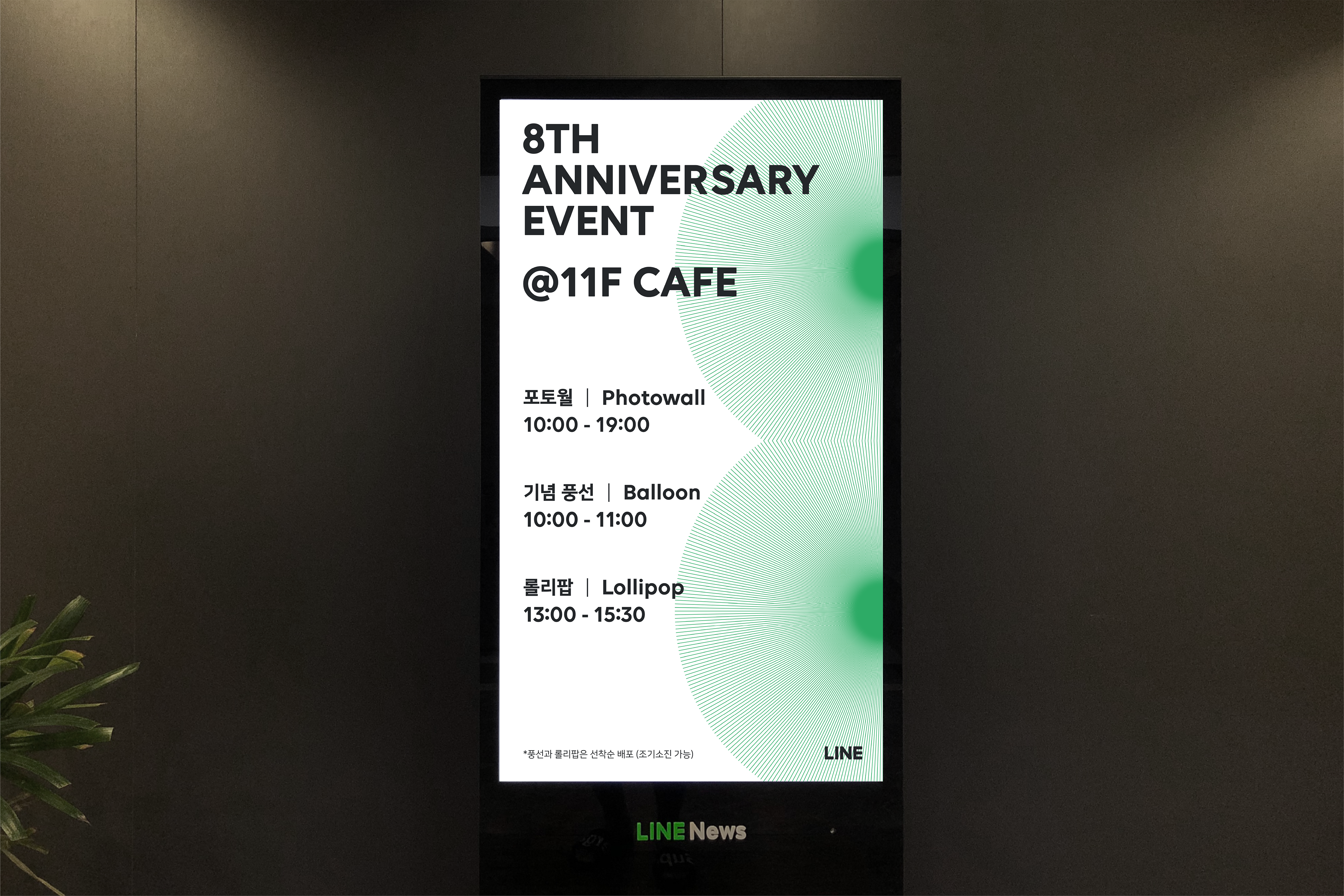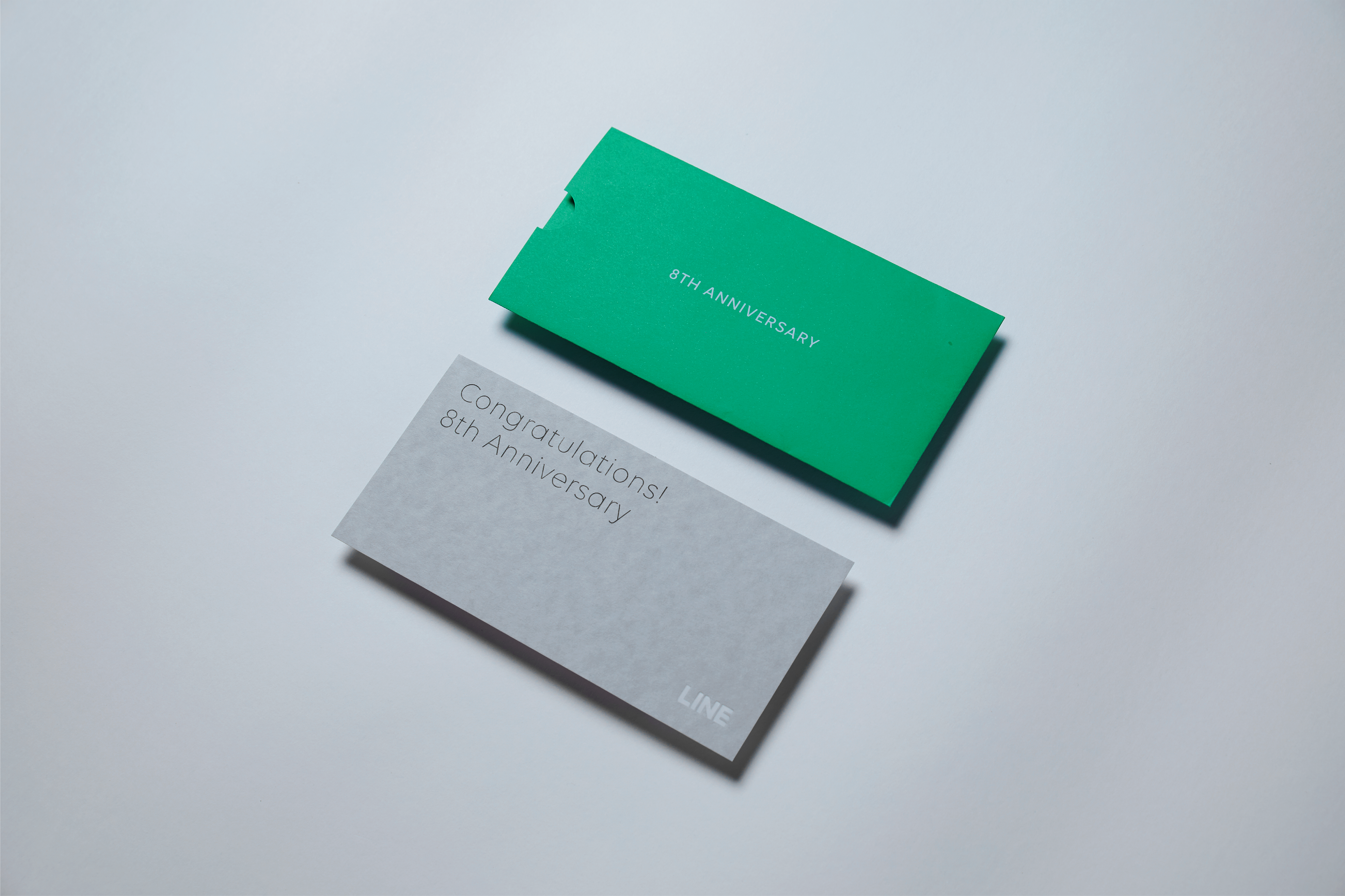 To celebrate LINE’s 8th anniversary, I developed a dedicated anniversary event identity and delivered a global celebration across 42 offices in 11 countries through product and spatial branding. The key visual was created by combining the number 8 with LINE’s brand identity. Inspired by LINE’s motto, “Closing the distance,” the visual concept expresses how multiple lines converge toward a single point and form a circle—symbolizing the way information and people come together, connect, and communicate. This process was abstracted and visualized through the shape of the number 8.
